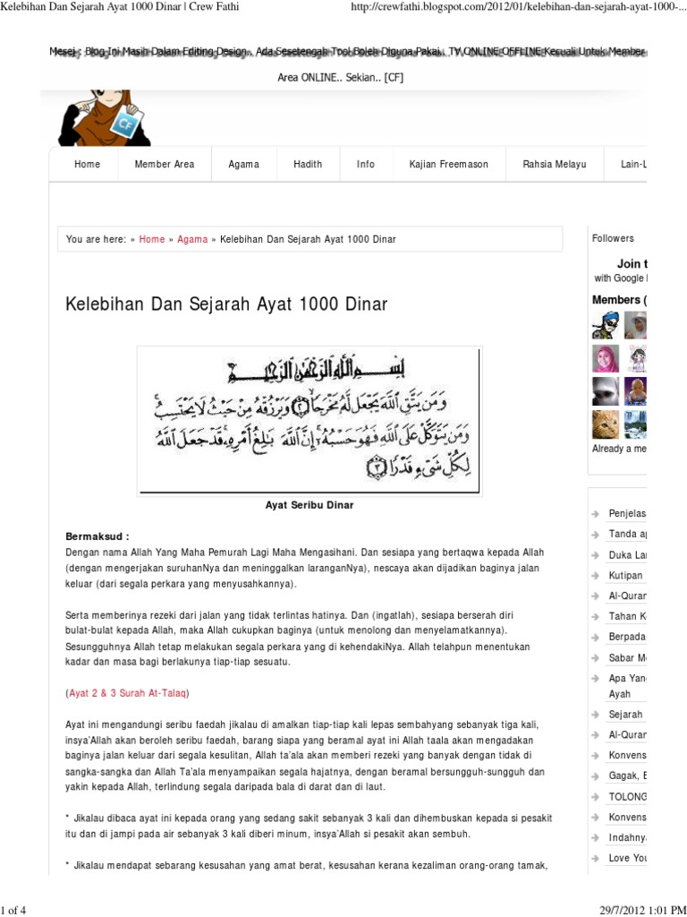 Fadhilat Ayat Seribu Dinar : Sejarah Ayat 1000 Dinar Dan Kelebihannya Niza Aziz : Menghilangkan keresahan bila di baca di waktu resah.