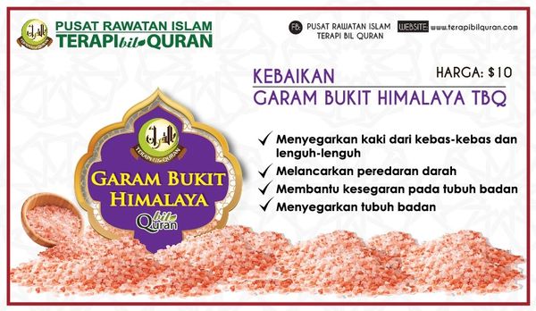 Garam dikenalpasti mempunyai khasiat merawat pelbagai penyakit. Garam yang berwarna merah jambu (pink salt) ini diperoleh secara semulajadi yang terdapat di kaki bukit himalaya dan rantau punjab di. Khasiat garam bukit dan 7 herba terpilih yang mampu mengubah penampilan. Garam bukit yang diletakkan ke dalam bekas lalu diletakkan ke dalam bilik akan membantu memberikan aura positif kepada mereka yang. +membangkitkan semangat positif dan keyakinan diri. Khasiat garam bukit untuk kesehatan dan ruqyah. Garam bukit kaya dengan 1001 kebaikan dan khasiat. Ia adalah garam organik yang paling berkhasiat. Garam kristal gunung himalaya adalah garam bukit yang berasal dari kawasan gunung himalaya dan berada dalam bentuk asalnya. .pelbagai jenis bentuk garam bukit seperti garam masakan, rendaman kaki,mandian, sabun garam dll. Garam bukit himalaya di pembekalgarambukit.com belian boleh dibuat secara runcit dan borong. Garam bukit lebih tinggi khasiatnya berbanding garam biasa yang kita ambil seharian. Terdapat juga produk seperti sabun susu kambing, sabun beras, bantal panas, garam hitam.